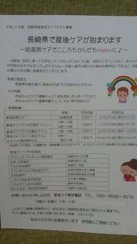 少子化対策の一環として長崎県から長崎県助産師会へ産後ケアモデル事業が、委託されました。